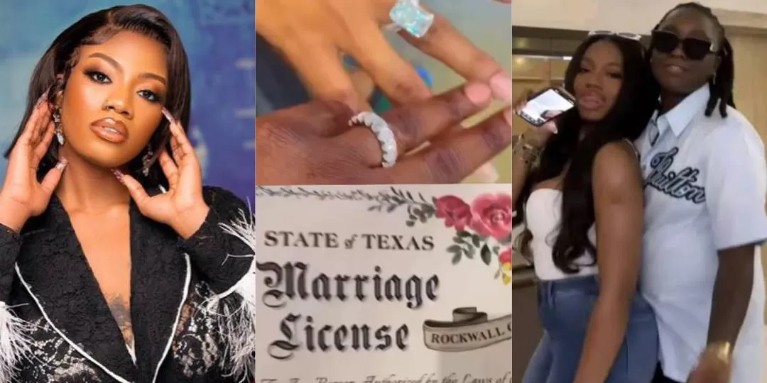 In the viral footage, the 25-year-old reality star is seen flaunting her wedding ring, whilst her partner, Tumie shared their marriage certificate held in Texas, United States, signaling that they are officially married.